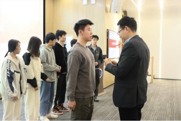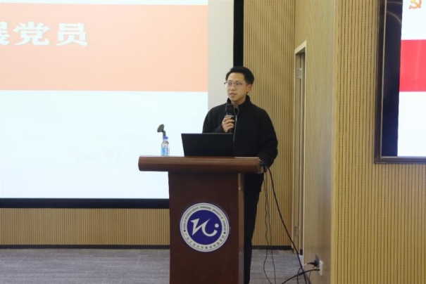 接着,入党介绍人代表梁明鹏同学上台发言。他从“立场坚定的中国共产党拥护者、思想积极向上的践行者、工作能力出色的行动派”三个角度,阐述了其介绍于欣蕾同学加入中国共产党的原因,并勉励全体新发展党员向优秀党员和先进典型看齐,苦练本领、脚踏实地,以更高的标准严格要求自己。