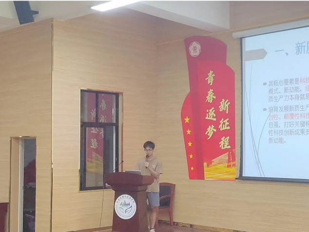 周志雄同学代表漫蛙漫画 二组进行了汇报,他表示,具有高科技、高效能、高质量等特征的新质生产力拥有新时代所面对的机遇与挑战,而重要的是我们青年学子在面对这新背景下该如何应对。
