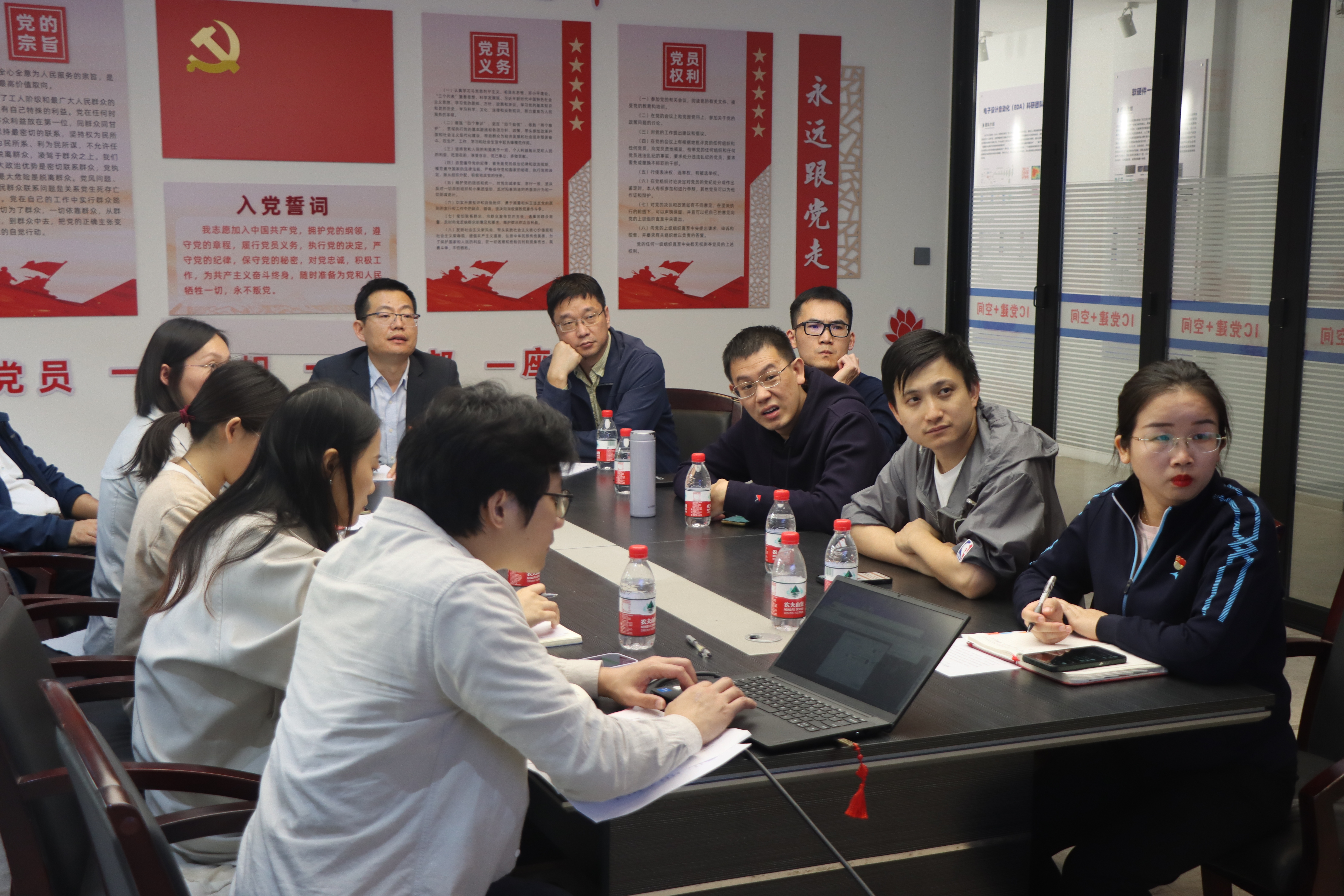 参观学习结束之后,党支部书记围绕贯彻和落实思想理论建设、扎实开展党的二十大学习、习近平总书记系列重要讲话精神学习等内容,结合支部政治建设、党支部战斗堡垒作用、党建与业务深度融合等方面,总结陈述2023年抓基层党建的相关工作和开展的各项活动。
