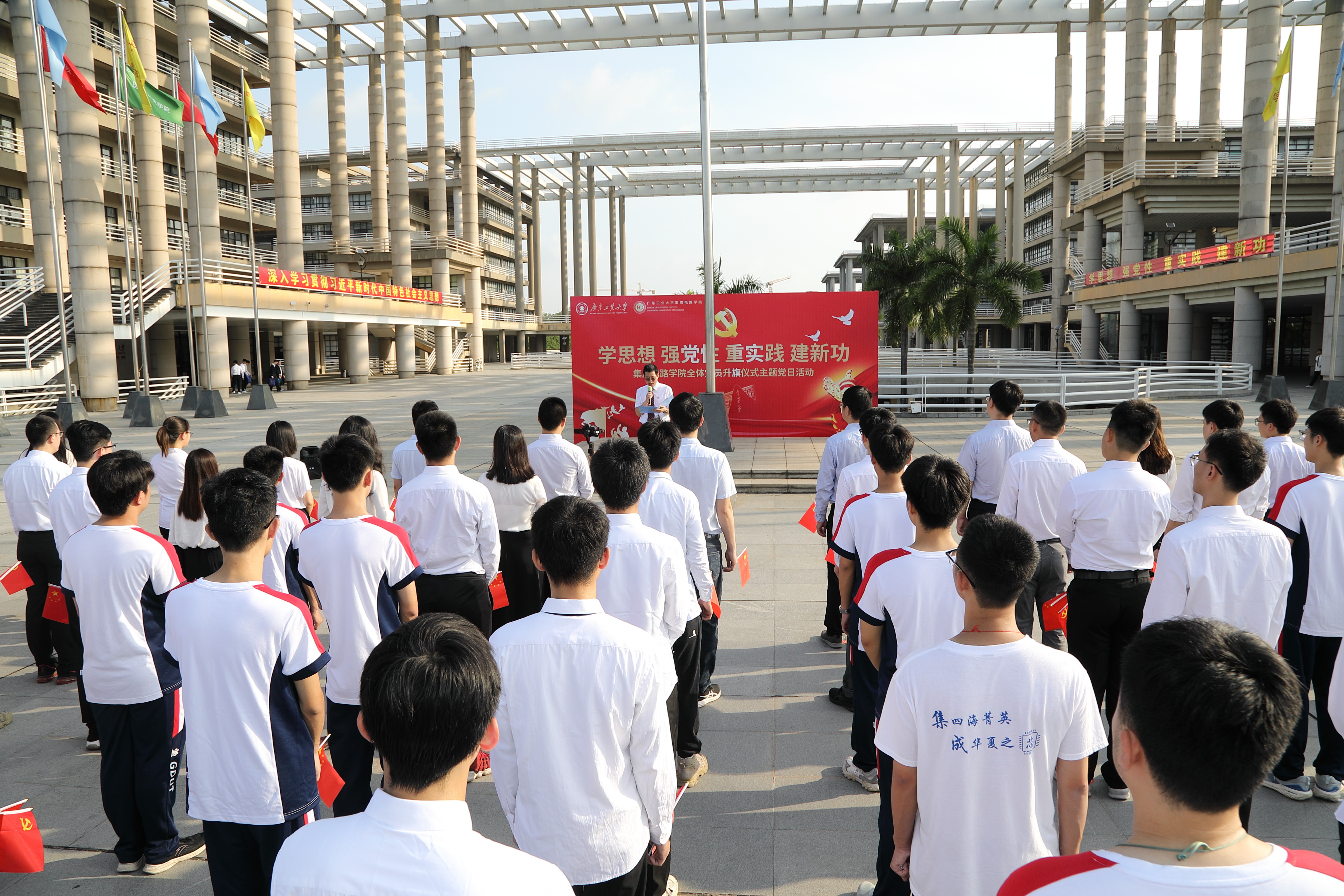 本次升国旗仪式主题党日活动在齐唱的校歌《逐梦》中圆满结束。“不忘初心、牢记使命、立德树人、强芯报国”不仅是一个口号,更是学院全体党员奋斗的目标。路虽远、行必至,事虽难、做必成。让我们发挥党员先锋模范带头作用,始终保持锐意进取、敢为人先、迎难而上的奋斗姿态,积极担当作为、敢于善于斗争,为广东打造集成电路第三极做出自己的新的更大的贡献。