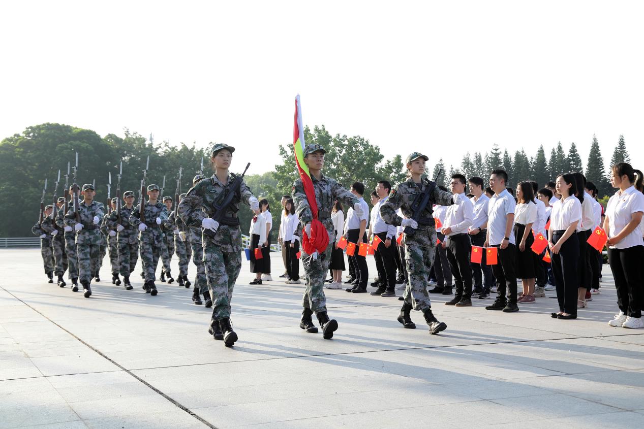 于5月29日上午在正门升旗台举办升国旗仪式主题党日活动。学院党委书记沈彬、副院长蔡述庭、刘远、刘振,全体教职工党员、学生党员以及第56期入党积极分子等共计140余人参加活动,学院副书记石宇杰主持活动。