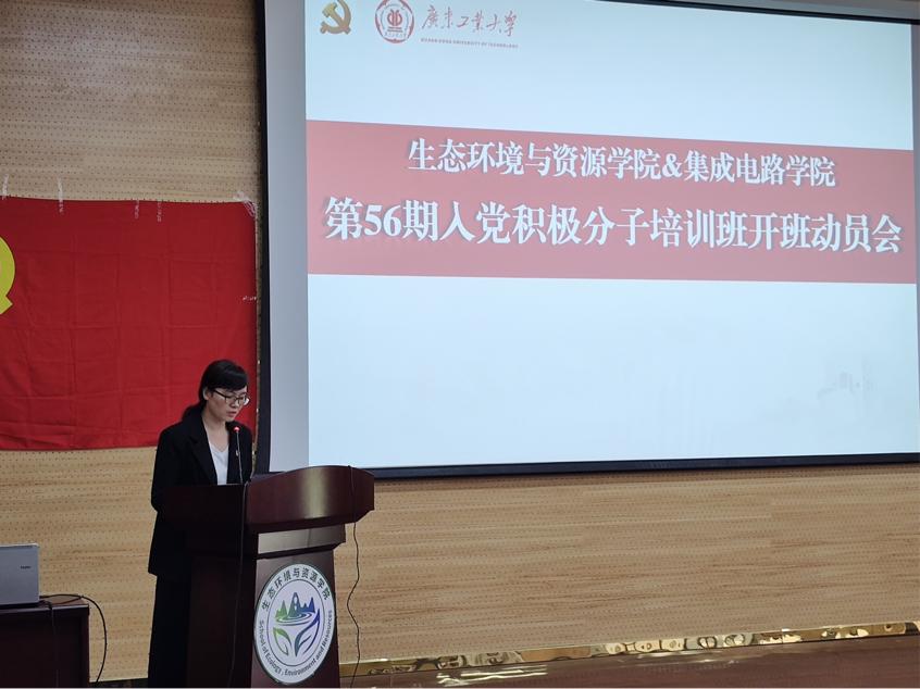 与生态环境与资源学院联合举办的第56期入党积极分子培训班于4月25日中午举行了开班仪式,我院党委书记沈彬、党委副书记石宇杰,生态环境与资源学院党委副书记武慧娟,两院学生党建指导老师、入党积极分子参加了本次活动,开班仪式由武慧娟副书记主持。