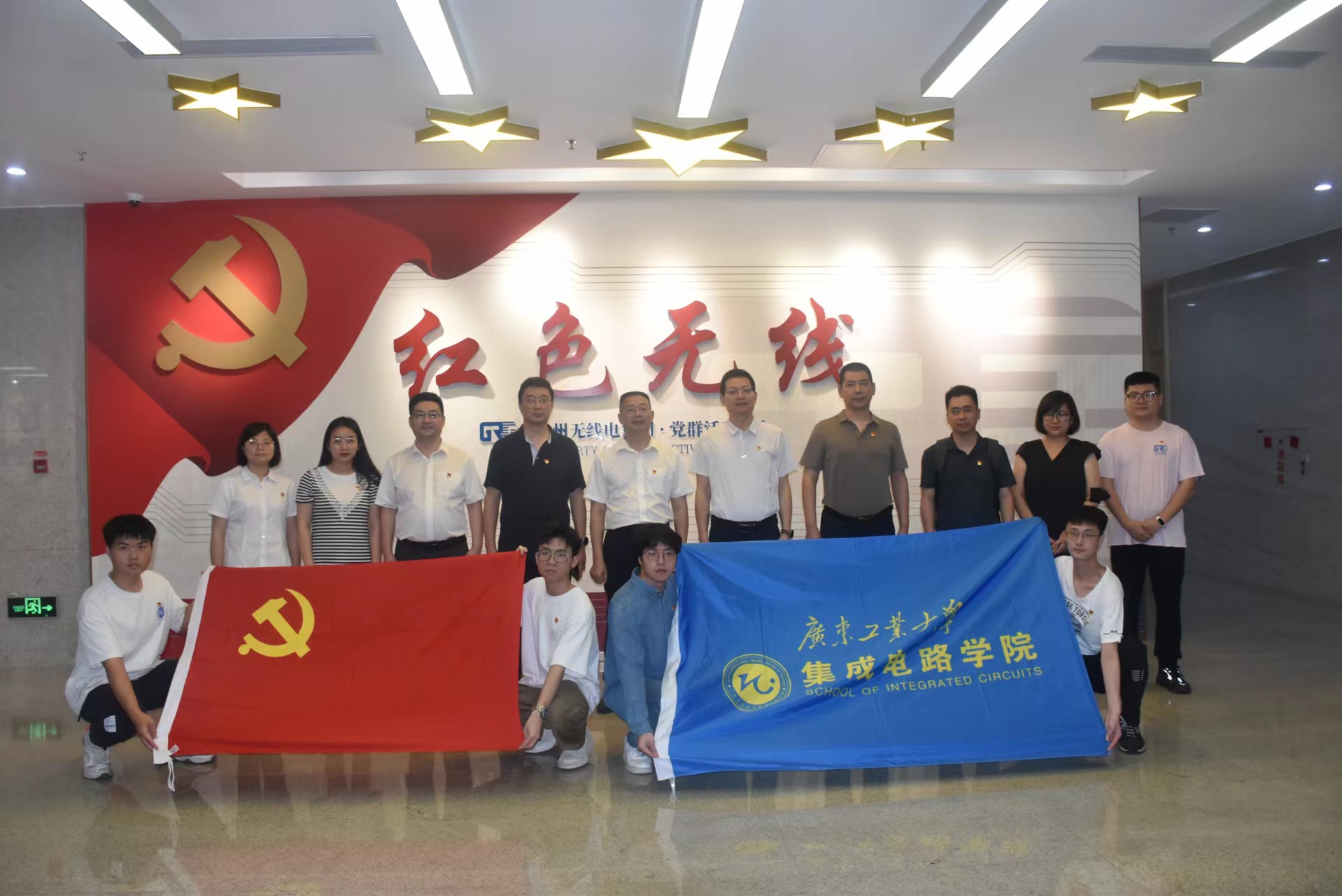 为深入学习贯彻党的二十大精神和“学思想、强党性、重实践、建新功”主题教育总要求,推动主题教育走深走实见行见效,不断增强党组织的凝聚力、战斗力和创造力,5月23日下午,学院党委书记沈彬率队前往广州无线电集团开展党建互联共建活动,学院副院长蔡述庭、院长助理李建中,党政办公室主任谢春琼及四个学生党支部党员代表参加了此次活动。