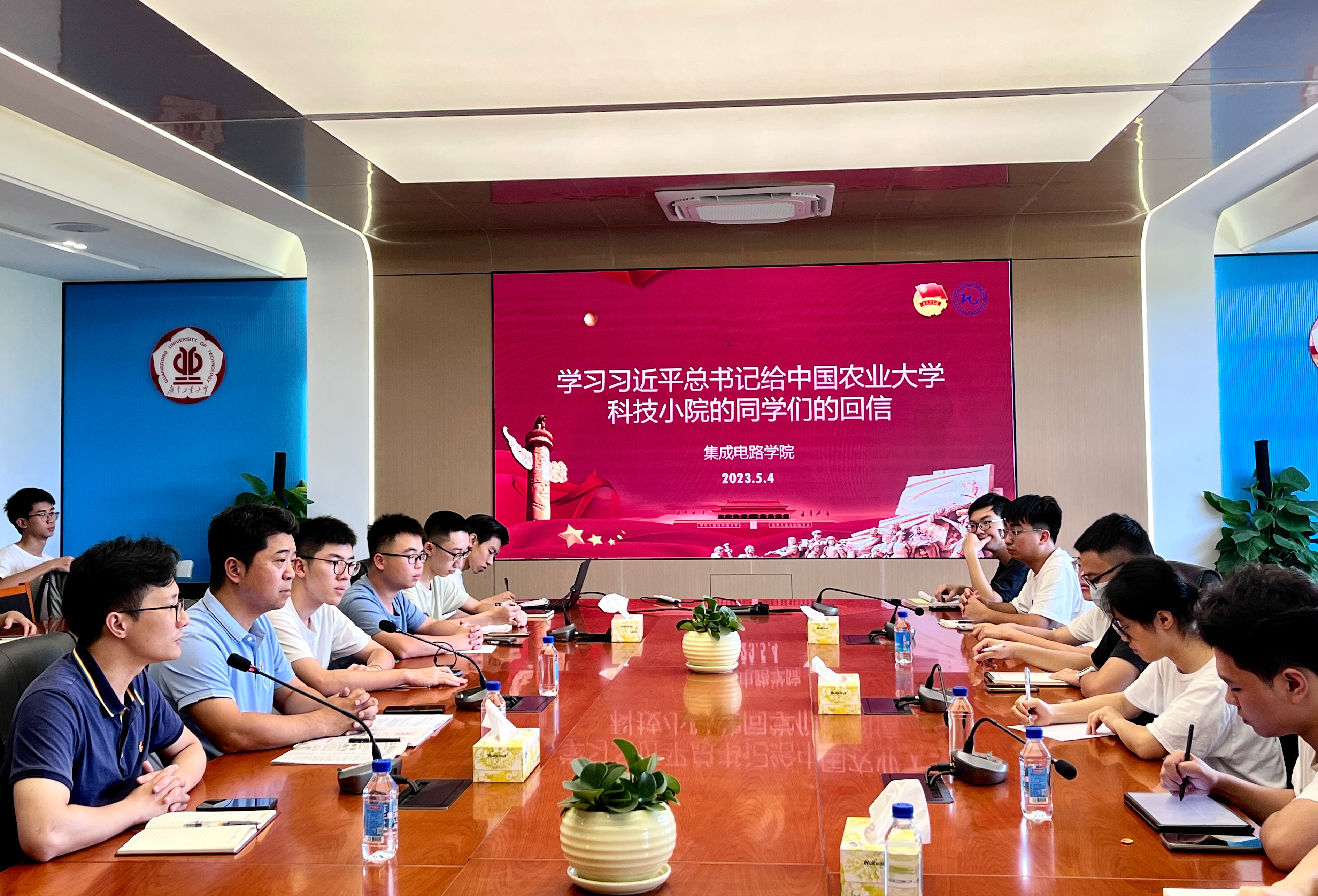石宇杰副书记领学了“回信”的内容,学习了习近平总书记的“青年观”,围绕“总书记心中的新时代好青年”的主题,引导广大青年学生树立“自找苦吃”的精气神,做有理想、敢担当、能吃苦、肯奋斗的青年。他结合学院的学科特点,剖析了当下我国集成电路产业的现状,鼓励青年学生们志存高远,脚踏实地,用青春智慧和汗水深耕集成电路行业发展,要立志将“小我”融入祖国的“大我”,练就过硬本领,投身强国伟业,为实现中华民族伟大复兴奋勇搏击。强调青年学生骨干更应该时刻坚守一份责任之心,明确责任,找准位置,尽心竭力,勇于担当,同时保持一颗进取之心,脚踏实地、追求卓越,保持永不言退的锐气和积极进取的朝气,百折不挠、超越自我,更主动投身班级管理建设当中,促进班风、学风和院风建设。