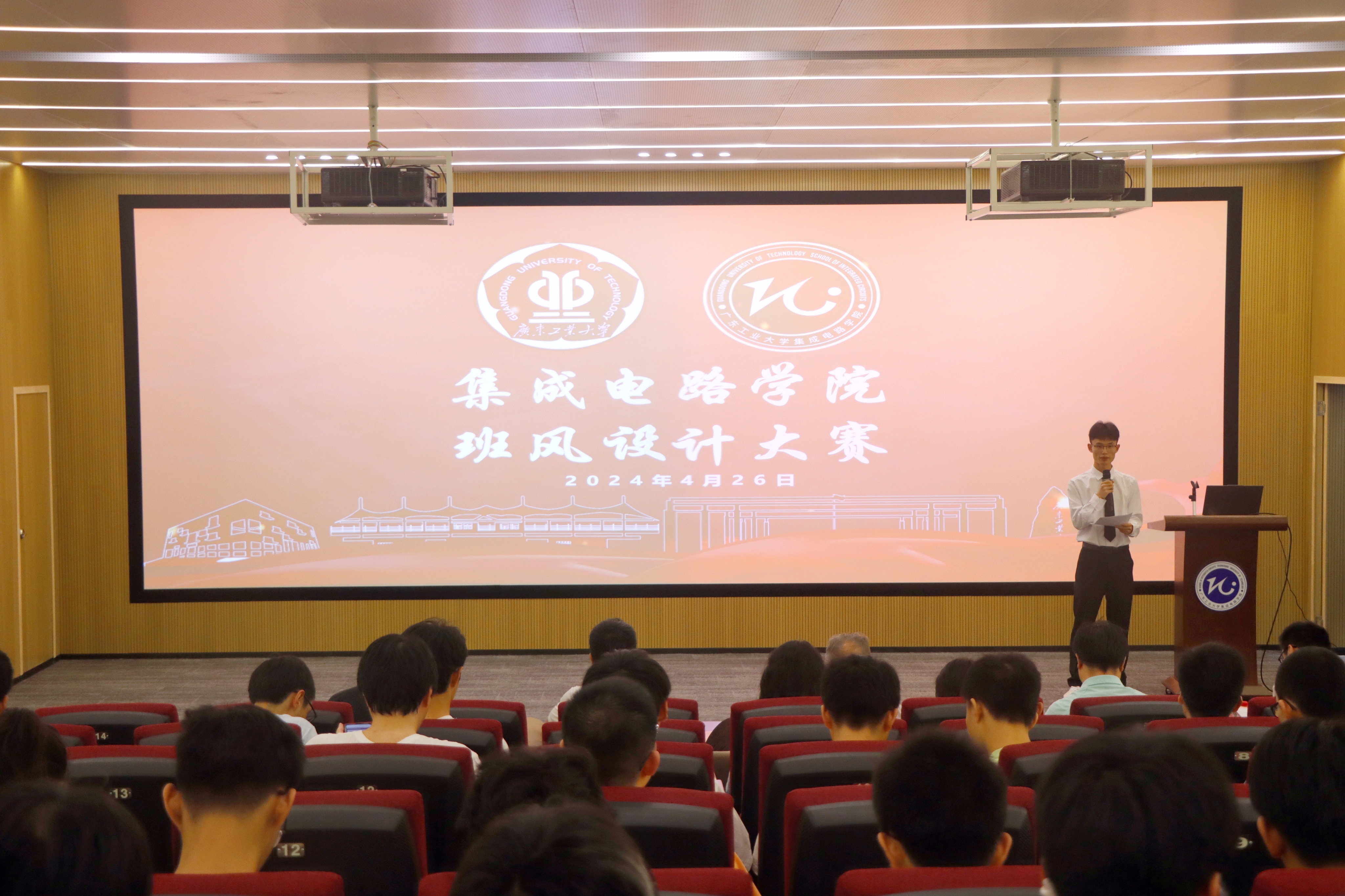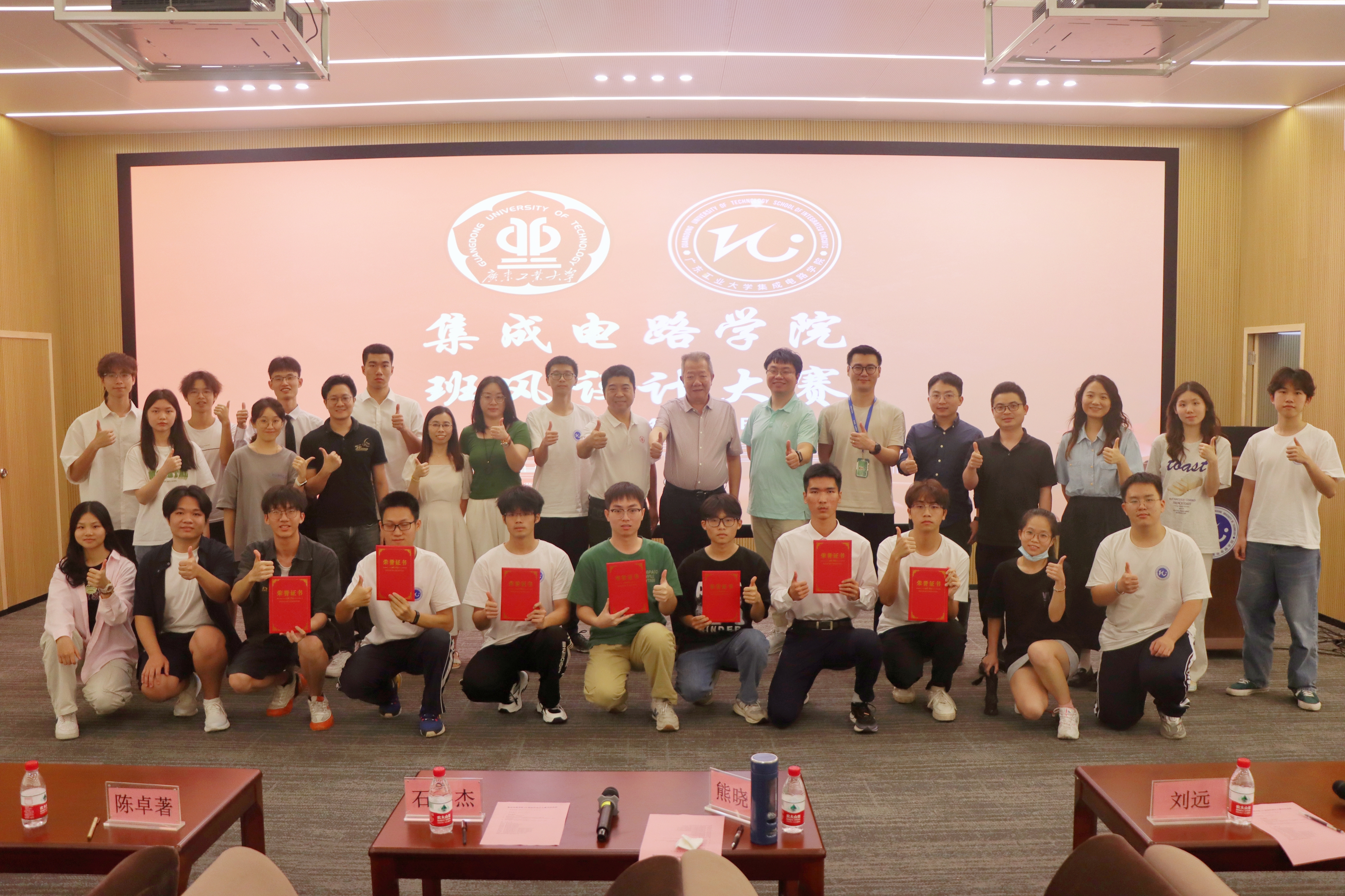 最后,熊晓明院长对本次班风设计大赛进行总结点评,他充分肯定各班为参加本次大赛所做的精心准备,认为同学们在比赛中展现出了青春活力、树立了明确的班级建设目标,赞扬了同学们入学近一年来的收获与成长,也鼓励同学们积极参与班级建设,各班之间相互交流学习,携手促进学院整体学风的提升。同时,熊院长也敦促同学们努力学习,响应国家发展集成电路的号召,以实际行动为中华民族伟大复兴贡献青春力量。