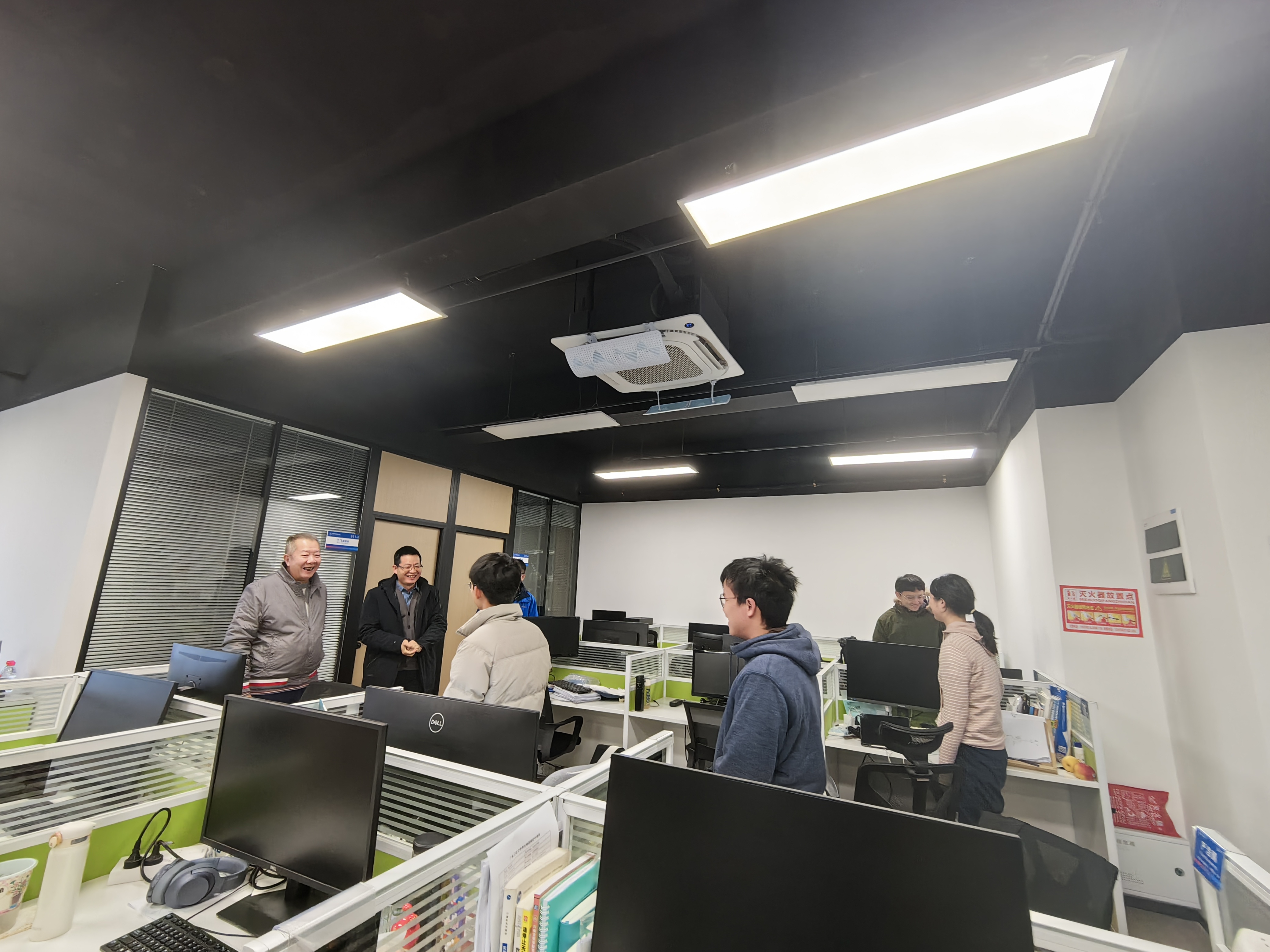 在实验室,学院领导与留校研究生亲切交谈,了解同学们留校的生活起居、研究方向以及项目进展情况。学院领导叮嘱同学们要严格遵守实验室的安全规定,利用好学院的条件和资源,投身科研实践,争取取得更加优异的成绩。