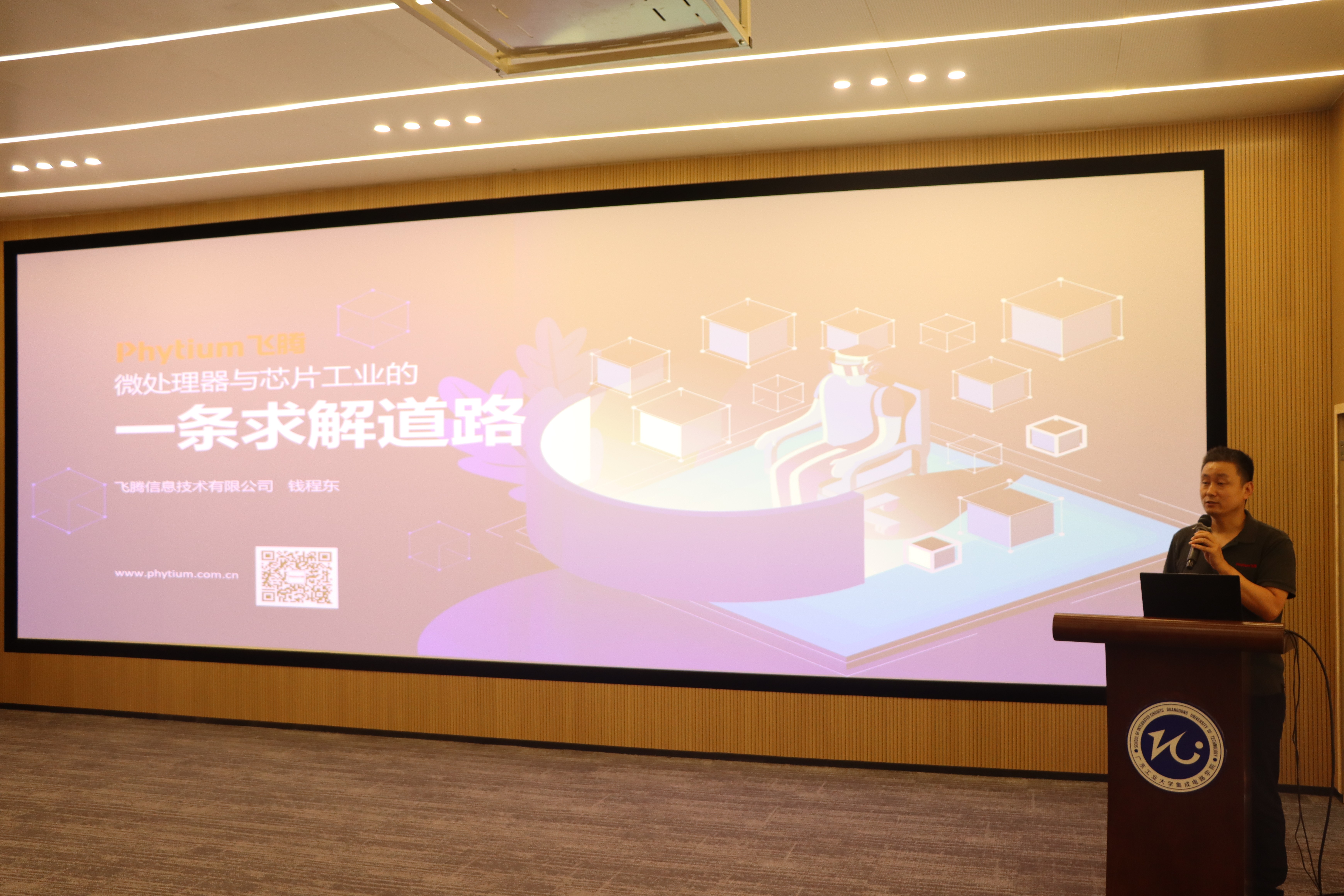 在理学馆学术报告厅举行了广工集成-飞腾战略合作揭牌仪式暨“芯"迎校庆系列活动,飞腾信息技术有限公司(以下简称“飞腾”)高校合作部总监钱程东、华南区教育行业总监陆永东、解决方案架构师罗恩明、行业拓展经理孙瑜蔓,学院党委副书记石宇杰以及100余名本科生出席了本次活动,活动由学院副院长刘远教授主持。