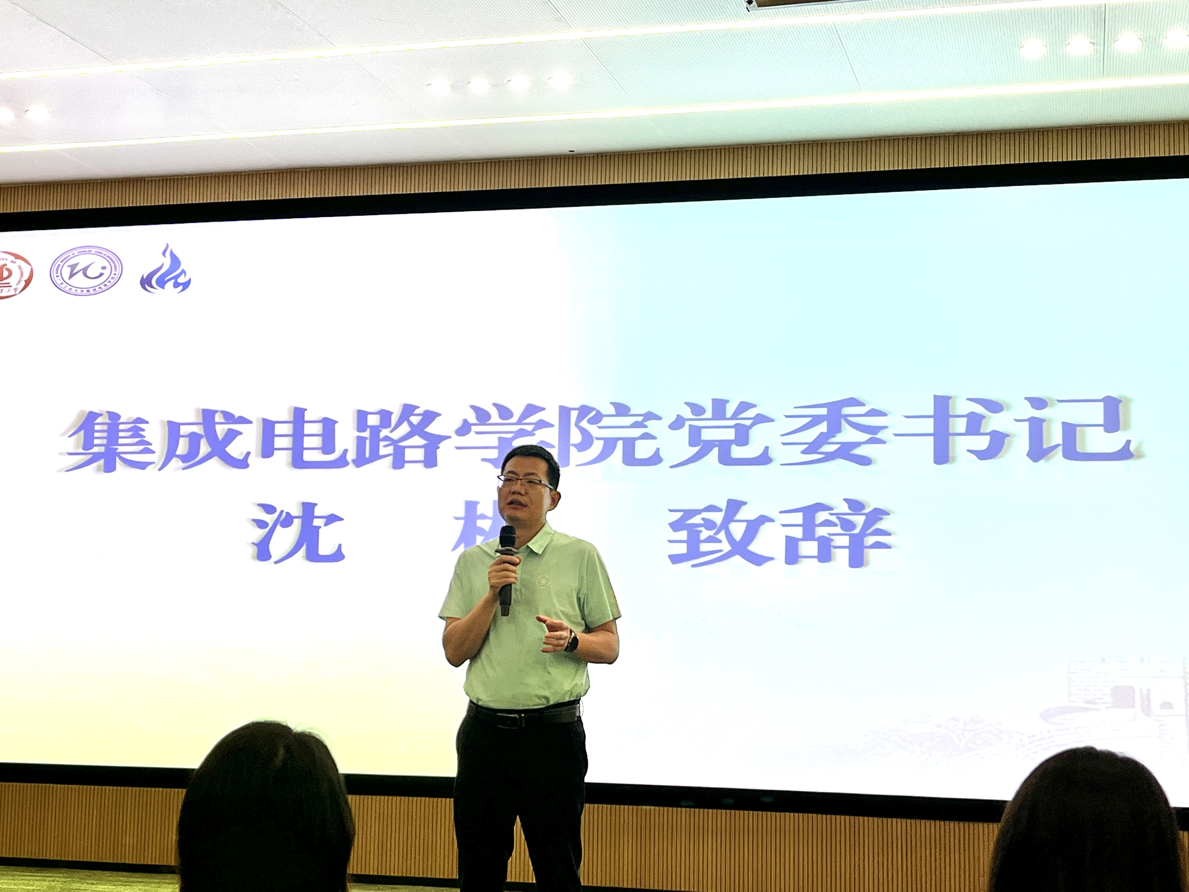 品牌化、精品化、体系化项目活动与学科竞赛;要提升沟通协商能力,积极主动与学院、学校、社会、企业沟通获取资源,为同学们提供更好的专业学习环境与资源;要锻炼文字写作、口头表达两大基本素质,能够将所思所想所行表达出来,落实到纸面、实处上。随后,沈彬书记为2022级集成1班学员代表邹锐同学授“芯火班”班旗。