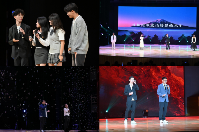 “风舞起新韵”在婉约灵动的开场舞《红马》中揭开帷幕,轻纱曼舞,古韵悠长。舞者以舞为笔,以身为墨,勾勒出一幅水墨丹青的绝妙画卷,让人恍若置身于烟雨江南,感受那份超脱尘世的雅致与柔情;歌声激昂,逐梦启航,歌曲《Sparks Fly》为现场观众讲述着追梦路上的坚持与勇气,勇气是逐梦的翅膀,带着同学们飞向圆梦的远方;聚光灯下,灵动的舞者们为观众带来节目《La Vie en Rose》,动感的节奏和飞扬的舞步彰显的是青春的活力与风采;歌曲《爱情转移》和《落叶归根》以不同的视角讲述着青年人在奋斗路上的困难与感伤,动人的旋律也告诉在场观众,无论风风雨雨,拼搏奋斗后晨曦的微光总会照进现实。