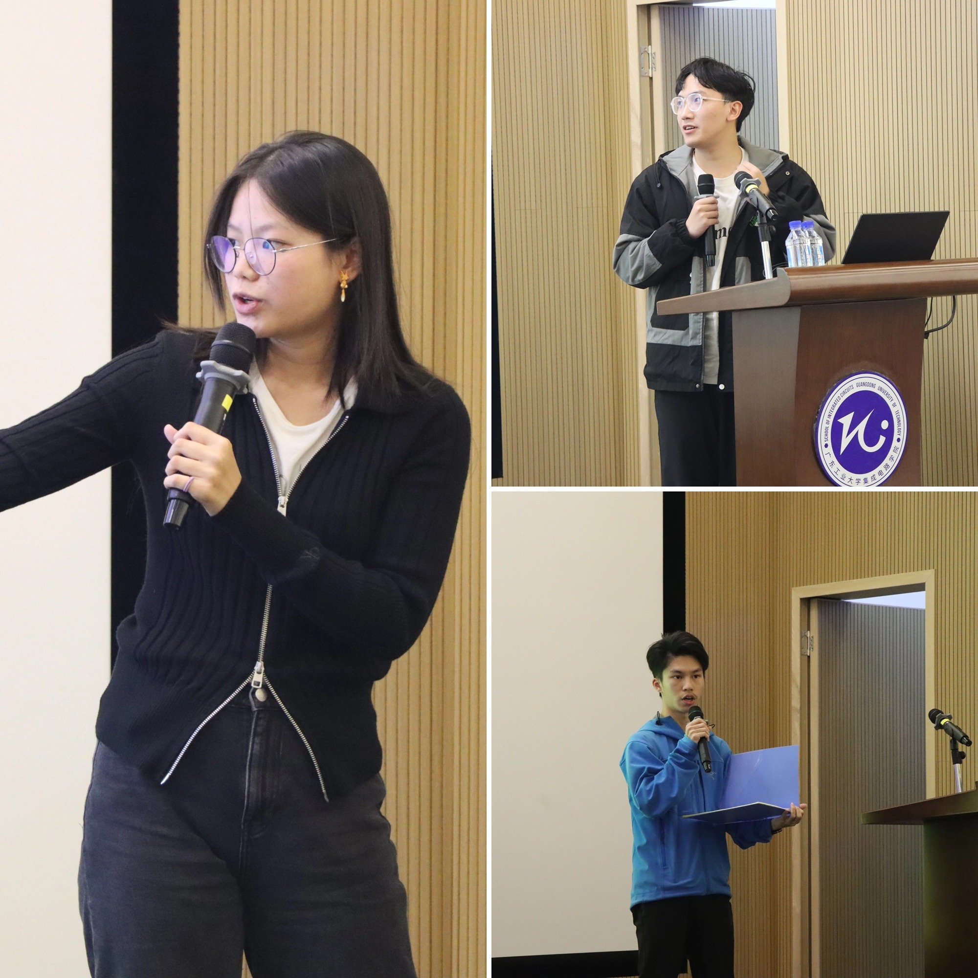 21支实践队伍依次登台,通过PPT、视频等展示寒假期间深入中学的招生宣传情况,其中包括组织百人规模宣讲会、创建线上答疑专栏等,图文并茂地呈现了寒假回访母校的实践成果,并最终11支队伍被评为优秀实践队伍。