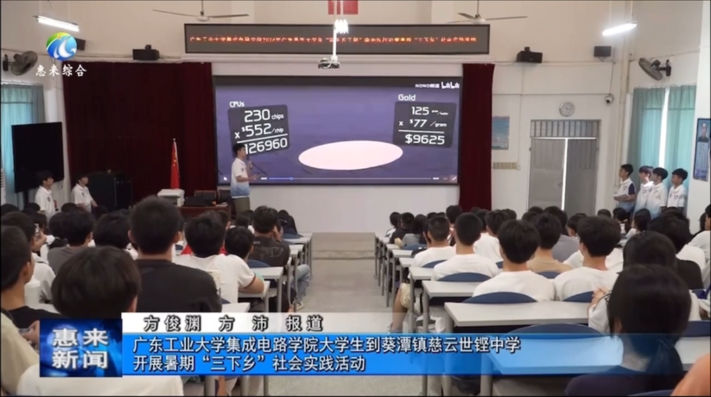 “‘芯’火相传 点亮科技强国梦”突击队于2023年8月4日-11日前往惠来县葵潭镇开展暑期三下乡社会实践活动和“国家资助和助学贷款政策下乡行”宣传活动,在葵潭镇慈云世铿中学及其周边开展进班宣讲、科普实践、走访调研等等一系列社会实践活动,并与惠来县团委共建“百千万工程”工作站,反响热烈,受到当地电视台的专题报道。