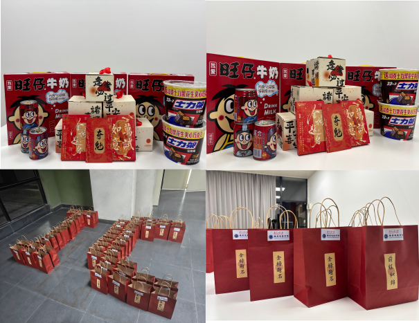 随后,老师和同学们分别为在场的备考学子逐一分发学院精心准备的暖“芯”加油包,满含美好祝愿与殷切希望。红红火火的考研上岸手提礼包如同每位学子迈向成功之路的“幸运行囊”,礼包中的“前程似锦”马克杯,寓意着每一位考研学子都能够成功解锁一战成“硕”里程碑,祝愿各位备考学子在即将到来的考试中能够一帆风顺,顺利上岸。礼包中香甜醇厚的旺仔牛奶为备考学子们注入满满活力,祝愿大家在最后的冲刺阶段能够以昂扬的斗志、愉悦的心情面对挑战,在考研过程中一路“旺旺”。此外,还有士力架作为“能量补给”,一根士力架,重启思维引擎,助力大家在考研马拉松的关键时刻乘风破浪,一往无前。