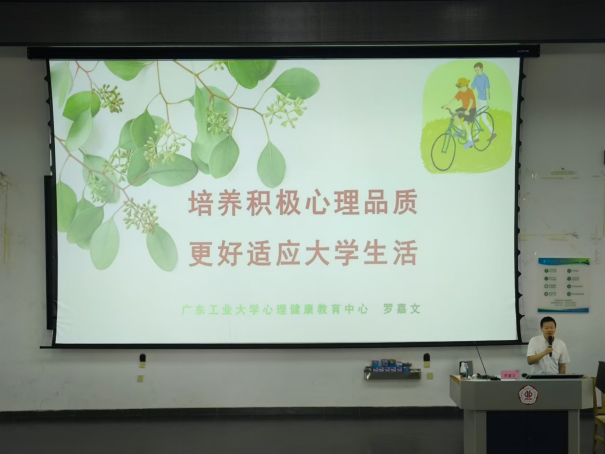 心理健康教育中心主罗嘉文主任为2024级新生开展大学第一课——《培养积极心理品质更好适应大学生活》主题讲座,学院党委副书记石宇杰、2024级本科生辅导员谢松强出席本次讲座。