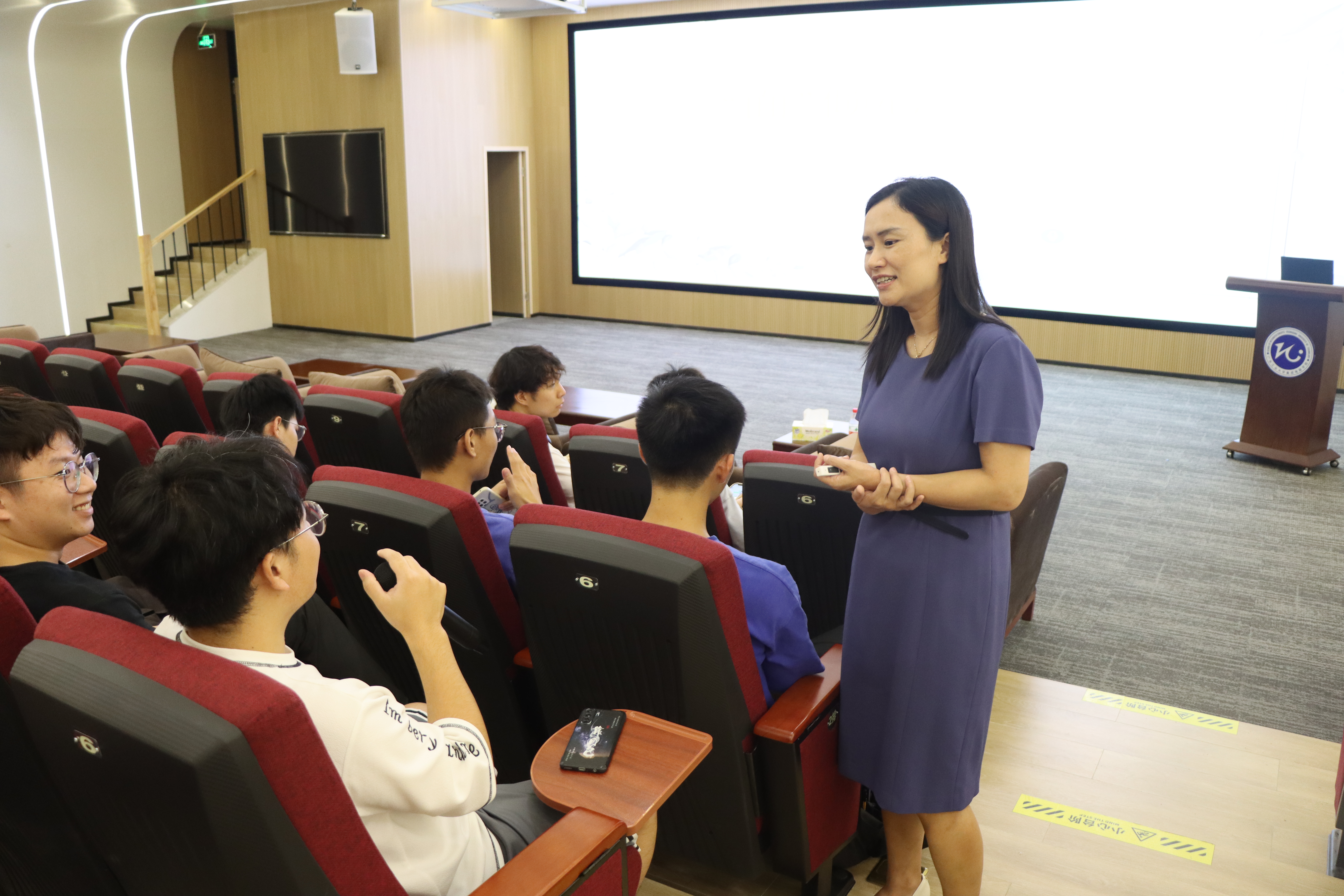 范梦老师着重向同学们介绍了求职面试技巧,从职业定位“三点一线”模型切入,从“目标、优势、价值”三个方面详细分析了简历制作过程和制作重点,并给同学们分享了求职准备时仪容仪表、体态礼仪、面部礼仪等职场礼仪的知识,最后讲解了各种面试类型的常见问题和准备方向。