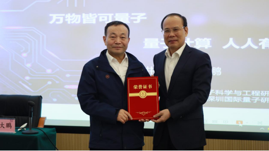 深圳国际量子研究院党委书记刘松对深圳国际量子研究院当前的发展建设,研究方向以及研究进展进行介绍。他指出“量子科技”是目前大国竞争的战略制高点,量子计算产业链已经贯穿工业应用,芯片加工,设备供应等多个环节,也希望进一步深化与学院在科研领域的务实合作。