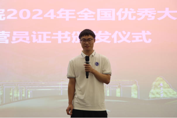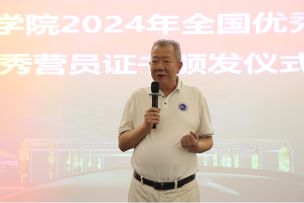 ,同时也对本次活动辛勤付出的老师们表示由衷感谢。随后,熊晓明院长为本次夏令营中表现优异的同学颁发优秀营员证书,并为顺利完成本次夏令营的全体同学颁发结营证书。熊院长对同学们圆满完成夏令营表示祝贺,并寄语同学们以此次夏令营为起点,永葆学术科研热情,勇于挑战自我,不断追求卓越,永攀科学高峰。