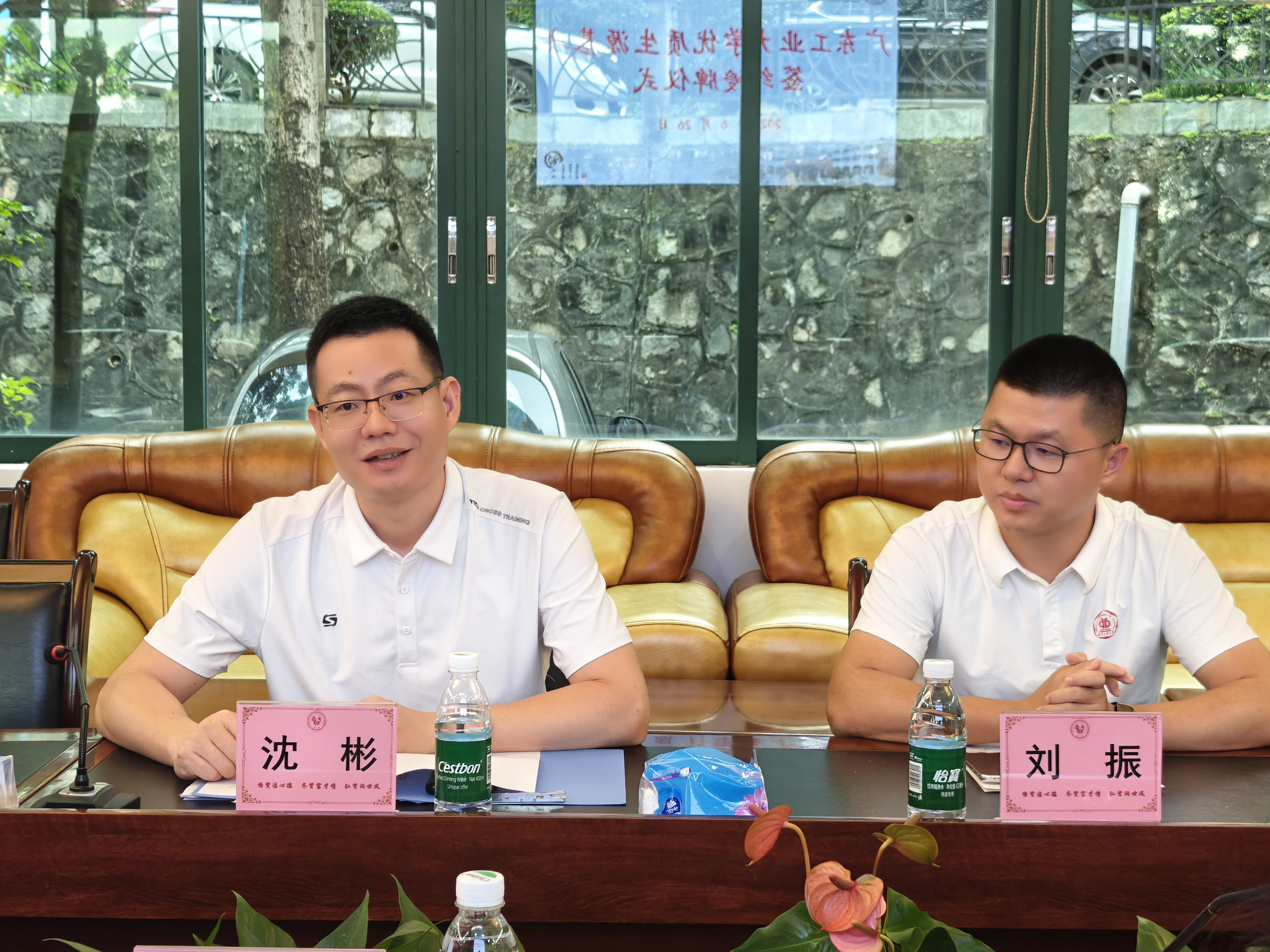 沈彬首先对象贤中学多年来向广工输送优质生源表示诚挚感谢,并从学校历史沿革、发展愿景、人才培养模式革新以及近年来取得的不俗成绩作了详细介绍。接着,他表示期待双方未来在学生培养、思政建设、学业发展等领域开展更为广泛、更为深入的合作,建立起互利共赢、互相交融的合作模式,助力一流人才培养,共同践行“为党育人、为国育才”的初心使命。