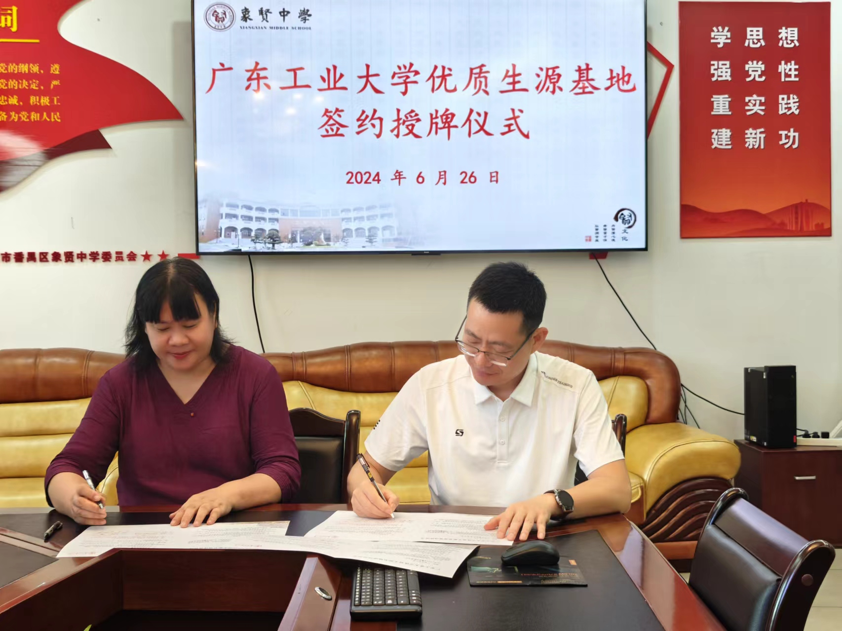 党委书记沈彬、副院长刘振、辅导员李秉寰一行前往广州市番禺区象贤中学举行优质生源基地签约暨授牌仪式,并开展本科招生宣传工作。