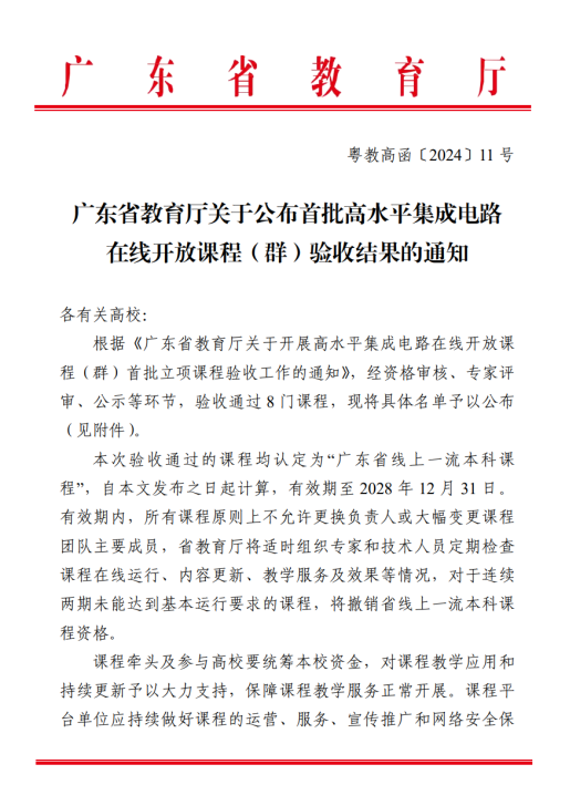 郭春炳教授负责的《模拟集成电路设计》通过验收,获“广东省线上一流本科课程”认定。