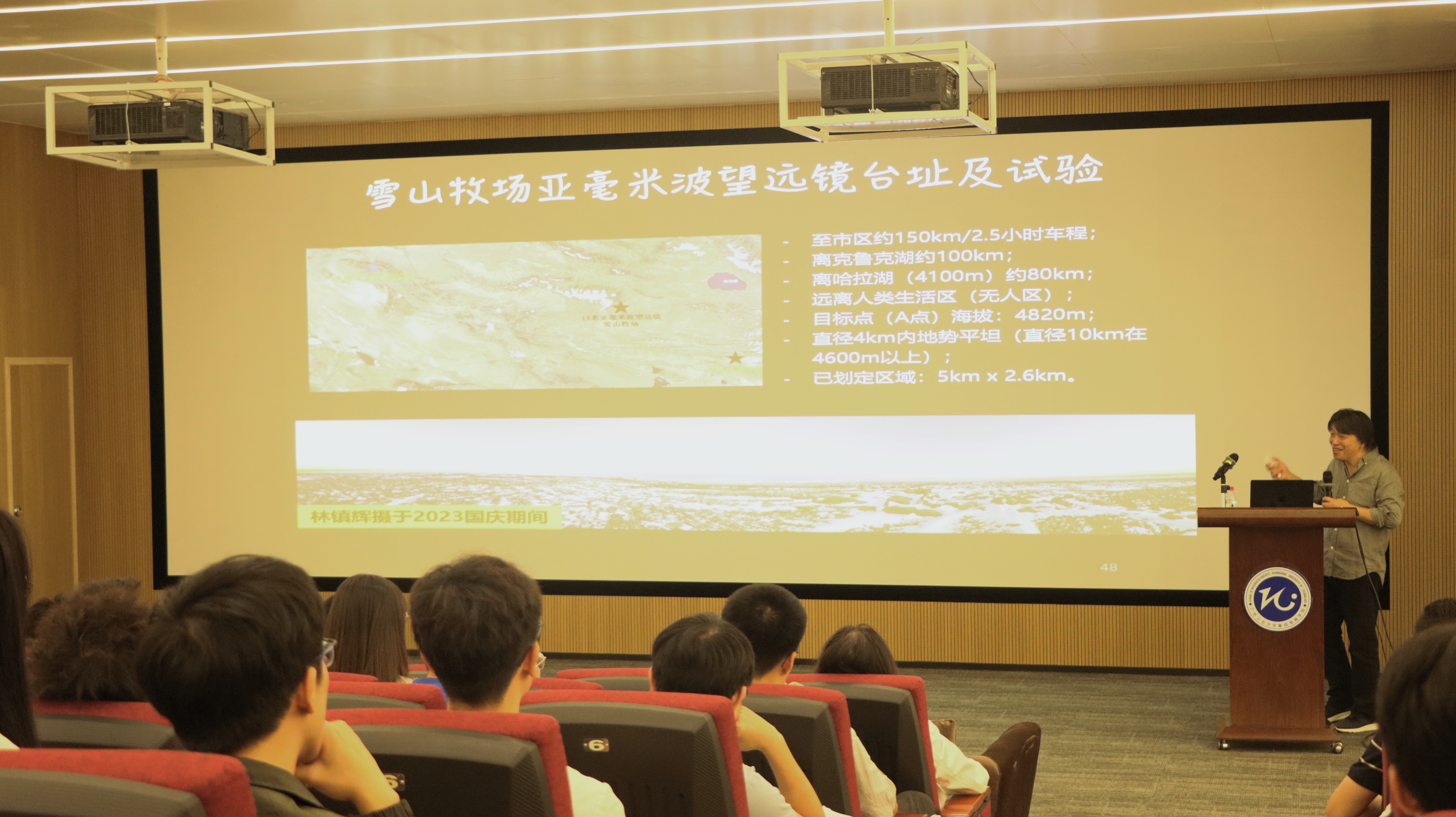 史生才院士以一段自己亲身经历的南极科考视频,引入主题,激发同学们的兴趣,用通俗易懂的语言和例子,从太赫兹、超导与天文探测等方面讲述了与射电天文相关的研究现状以及成果。同时通过呈现美丽壮观的星云照片,介绍了射频天线在天文观测中的运用以及未知的应用领域,鼓励师生们深入研究射频领域,挖掘更多的可能性。