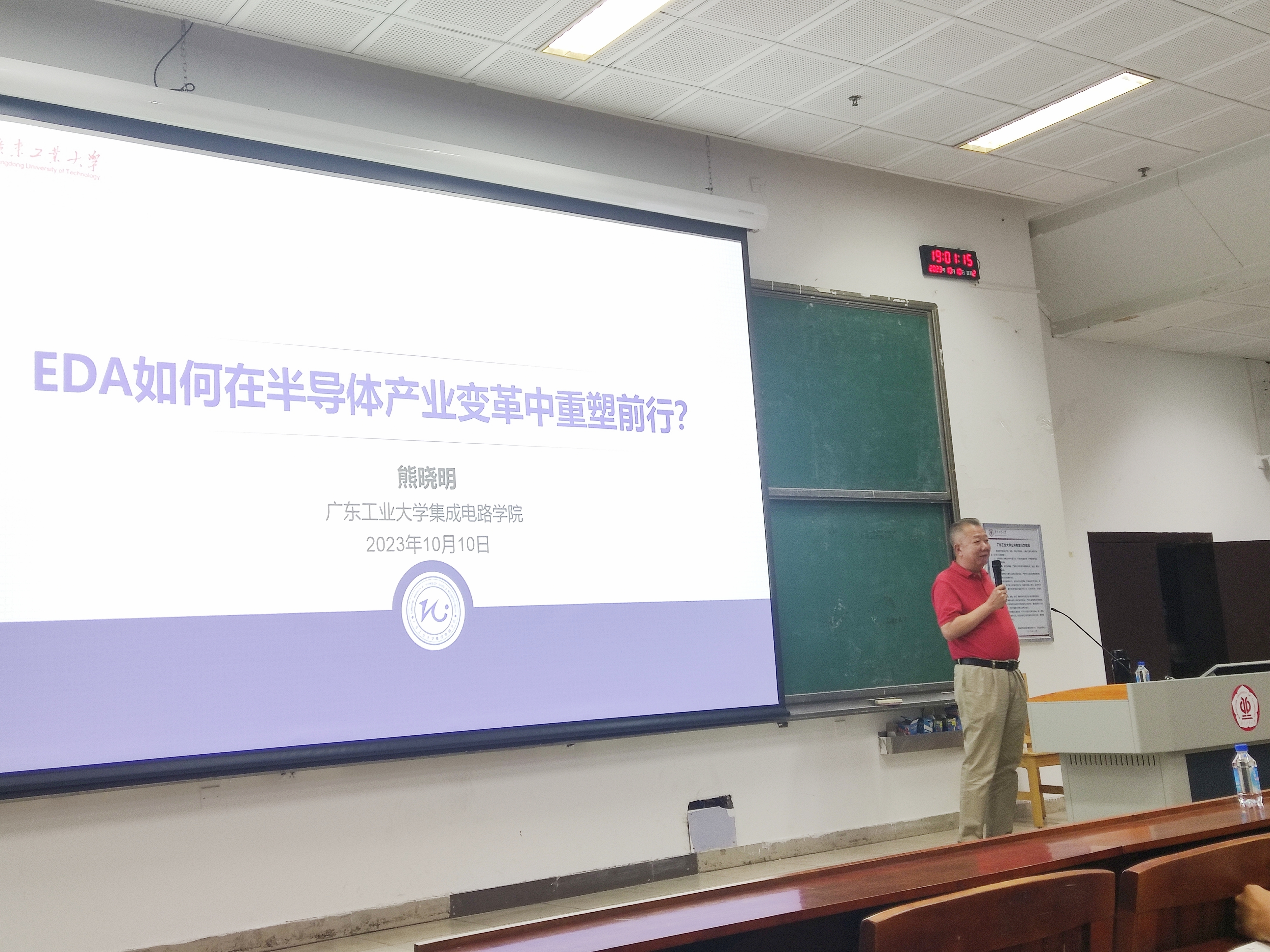 10月10日晚,漫蛙漫画 院长熊晓明教授受邀作客学院特色学术活动“芯”星讲堂,作了主题为“EDA如何在半导体产业变革中重塑前行”的学术专题报告。漫蛙漫画 2023级本科新生和研究生共计300余人齐聚五号大教室,学院团委书记戎明杰老师、2023级辅导员蒋佳琪老师参加了本次活动。本次讲座由研究生辅导员李秉寰老师主持。