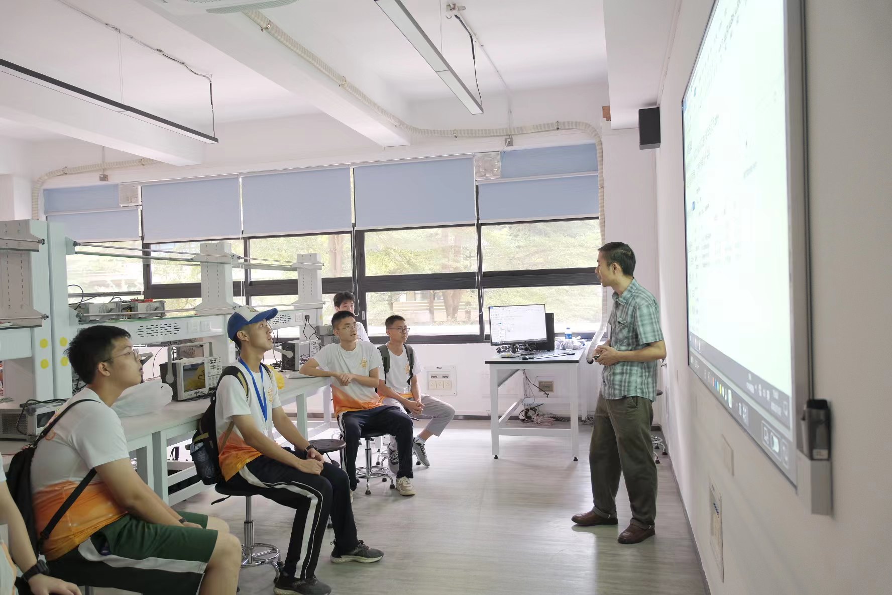 徐迎晖老师为中学生科普夏令营营员准备了一堂别开生面的学科体验课程--“模拟与数字世界的接口—采样定理”,并带领营员们实操了实验室机器设备,营员们对课程内容表现出极大的兴趣,课堂氛围浓厚热烈。