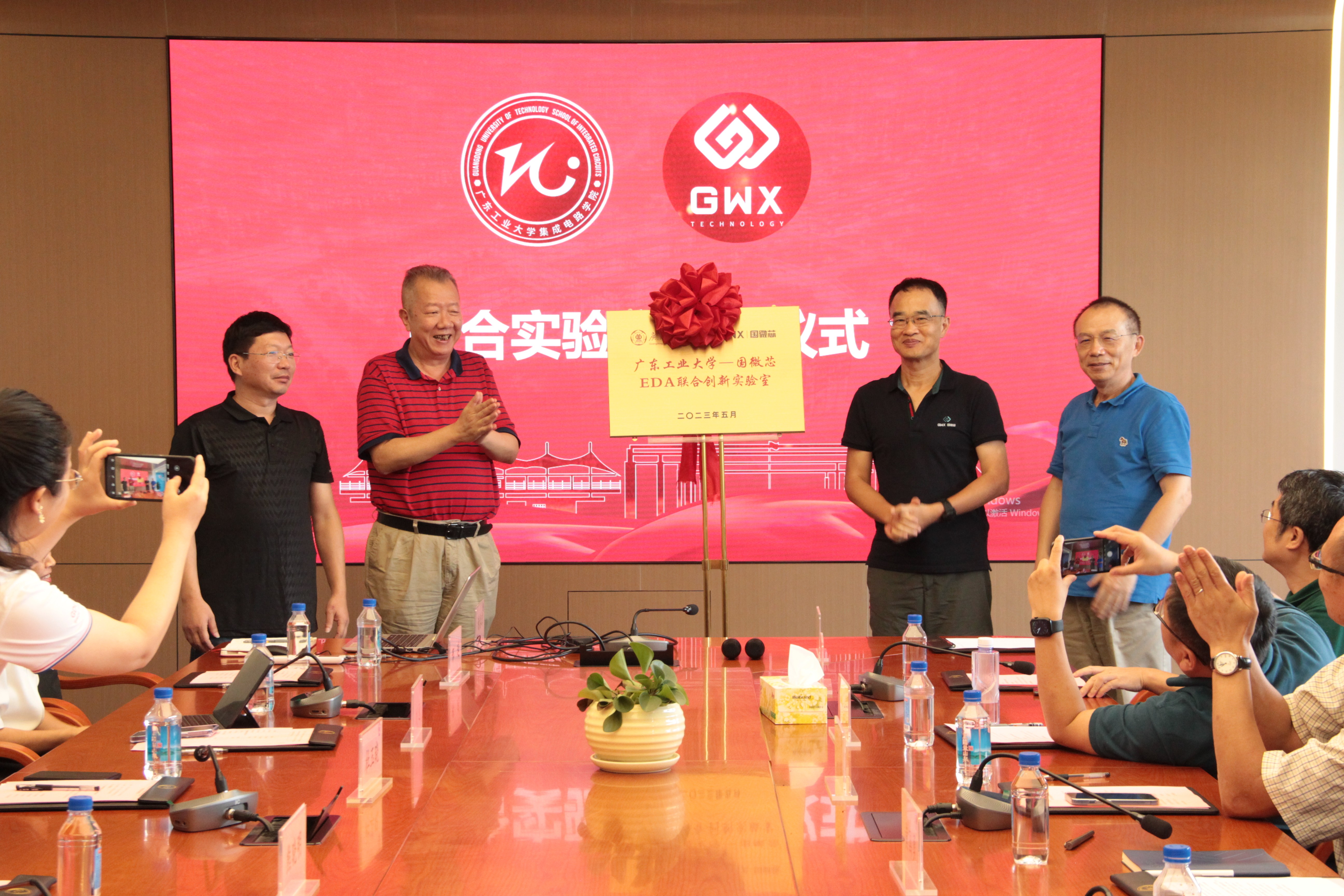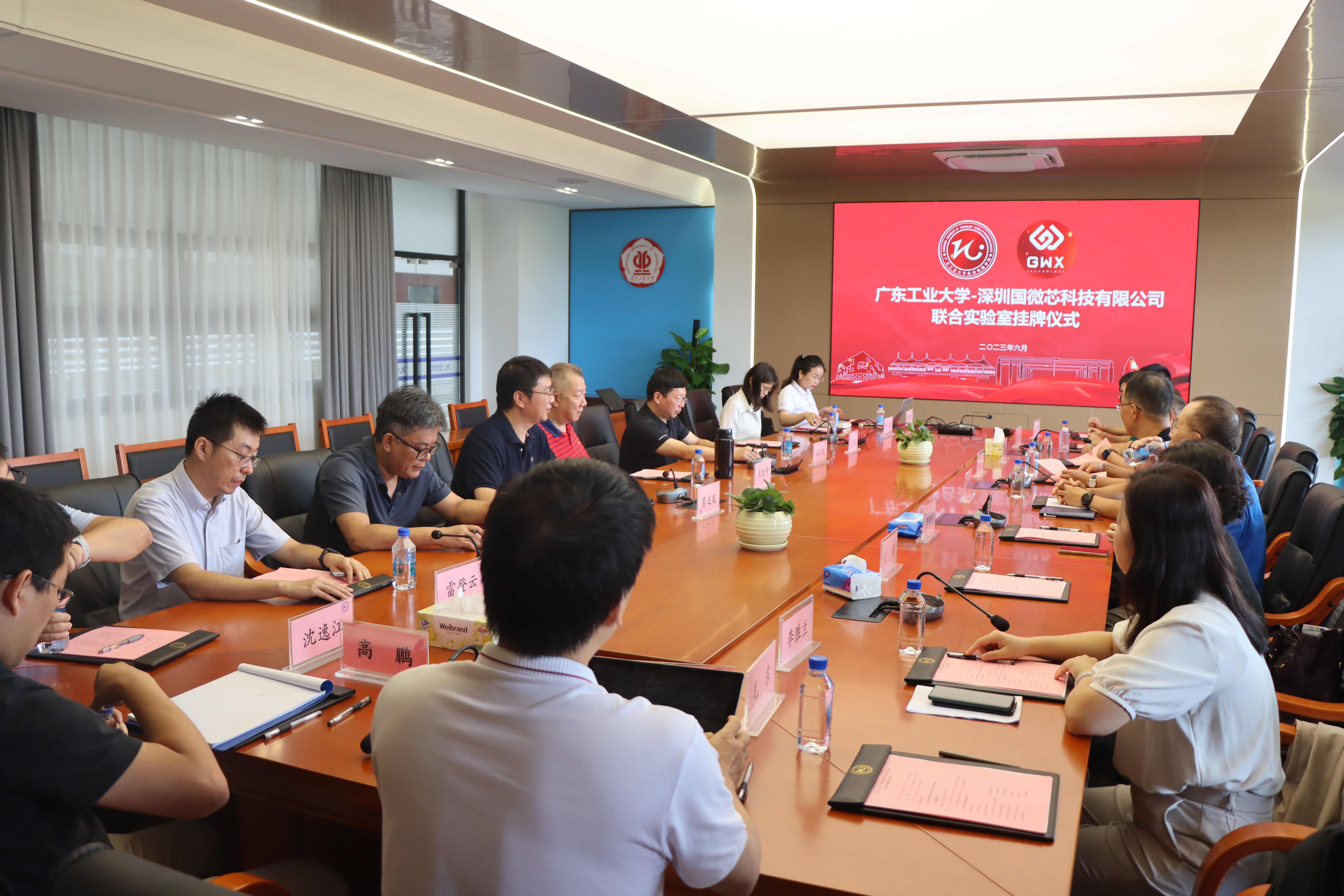 副院长蔡述庭、刘远以及联合实验室相关教师代表,深圳国微芯科技有限公司首席技术官黄国勇,副总裁龚明甫等参加了会议。