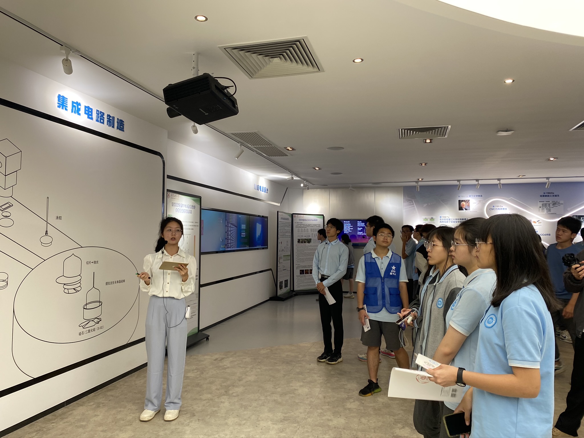 最后,学院“芯火”宣讲团带领师生们参观了学院的“集成电路认知体验馆”,从集成电路的发展历史、芯片制造、封装测试、发展前景等方面为他们进行了集成电路的科普讲解。