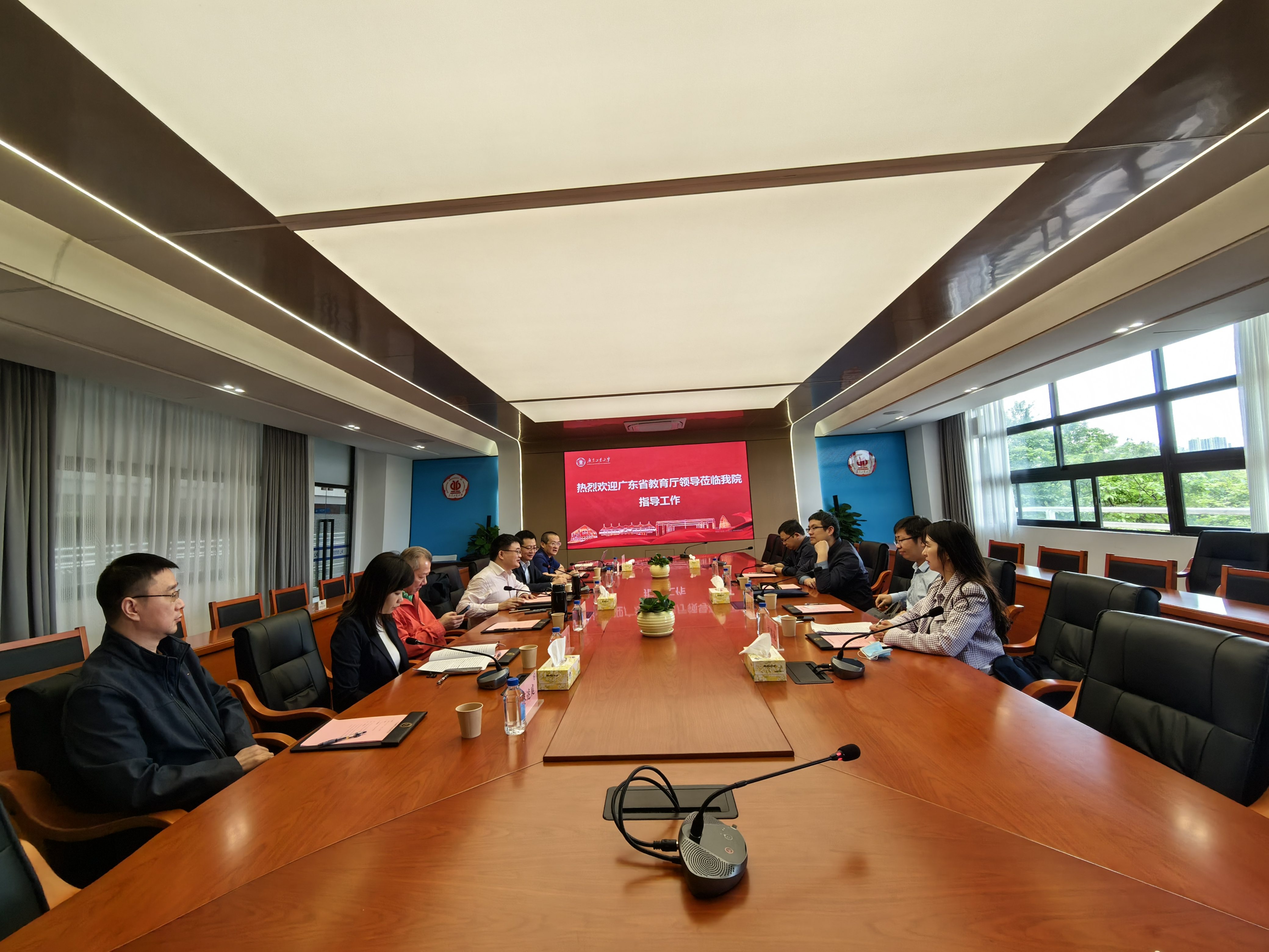 蔡宴朋代表学校对省教育厅发展规划处龙海山处长一行的来访表示热烈欢迎,并介绍了学校办学特色、学科建设、人才培养等方面的做法和思路。
