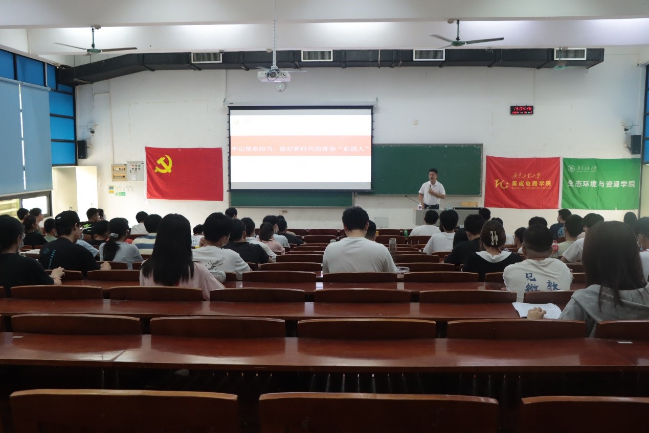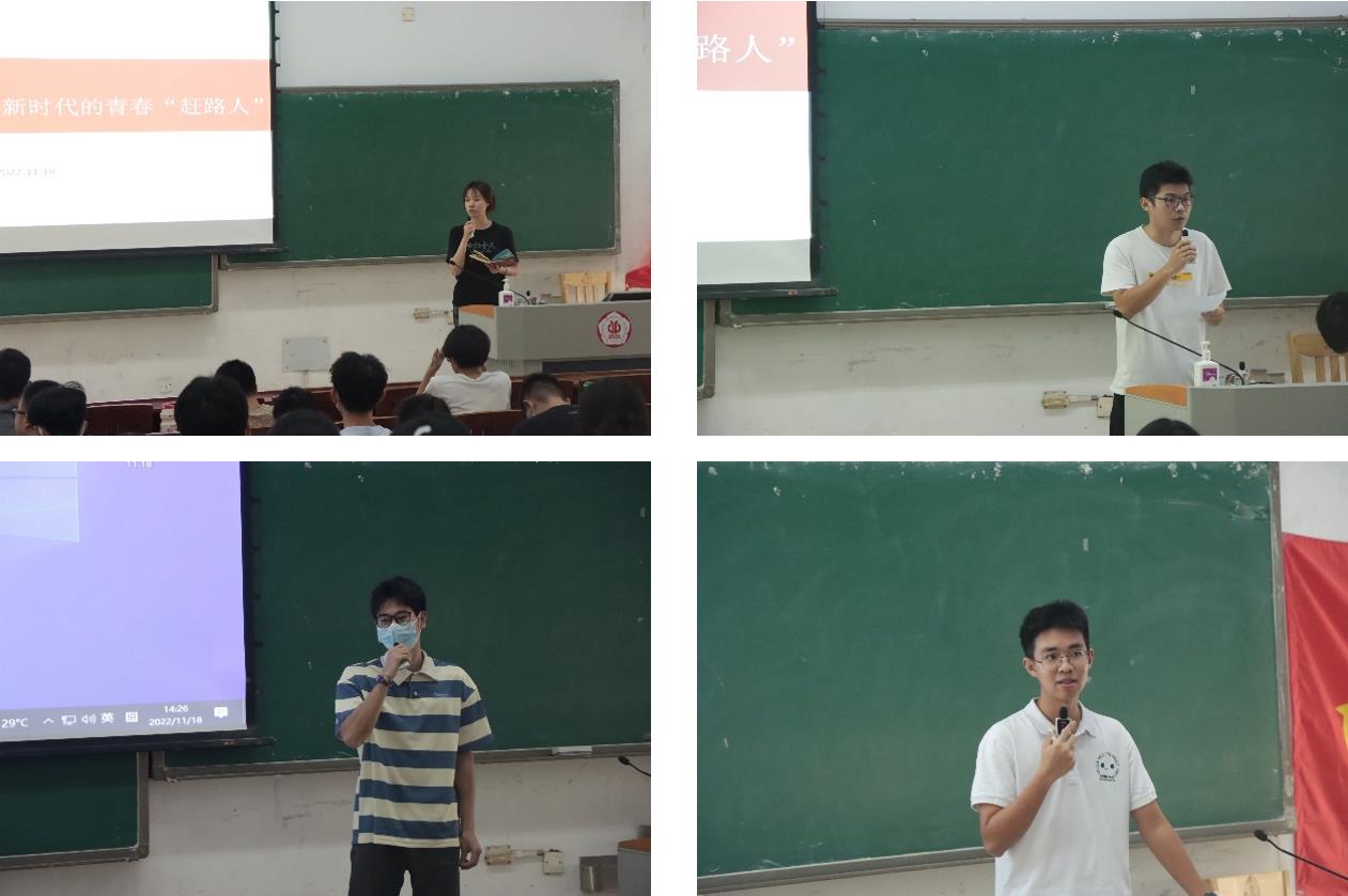 石宇杰副书记以《牢记使命担当,做好新时代的青春“赶路人”》为主题,分享了他在2019至2021年间于广东省清远市英德镇雅堂村参与的从精准扶贫到脱贫攻坚的经历,强调入党积极分子应该以一名优秀党员的标准要求自己,积极顺应国家潮流与大势,当国家需要、人民需要时,毫不犹豫,挺身而出。