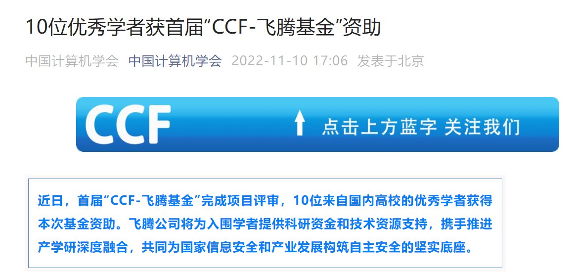 “CCF-飞腾基金”项目是中国计算机学会与飞腾信息技术有限公司共同发起的科研项目,课题主要涉及通用和专用微处理器设计、优化、制造、应用等多个研究方向。首届“CCF-飞腾基金”项目共收到国内76份项目申请;经过四轮评审,10位来自国内高校的优秀学者获得本次基金资助。