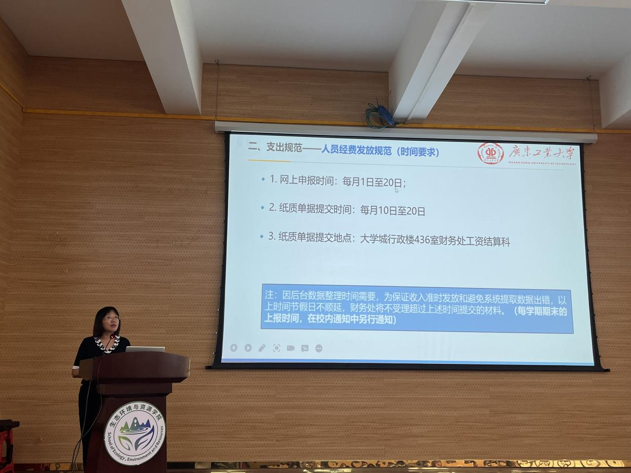 随后,罗燕琴作了财务制度规范培训,详细讲解办理报销业务时需注意的事项,要求学校教师严格按照财务管理各项规定,不打“擦边球”。在互动环节,罗燕琴处长、陈伟晓副处长对老师们提出的问题进行了现场解答,参会人员对财务报销相关问题得到进一步认识和理解。