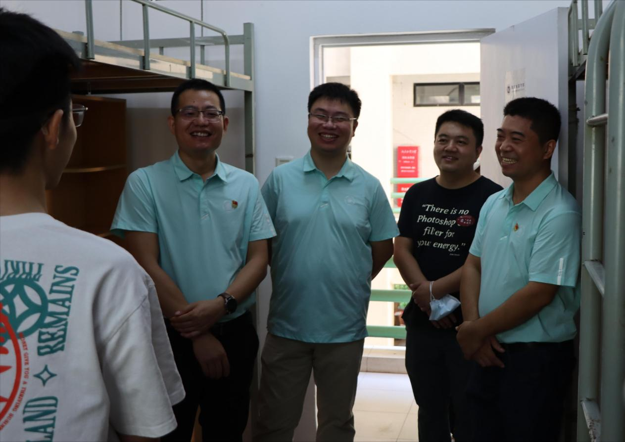 的新生,并走访新生宿舍,与新生亲切交流。