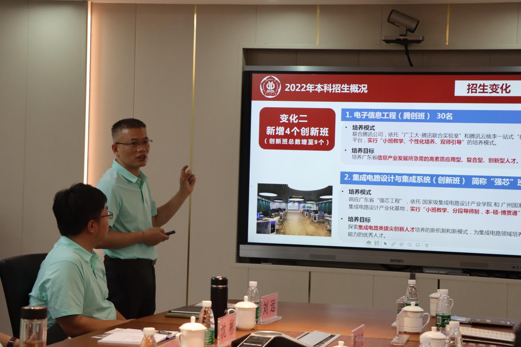 建校历程、发展概况、攀撑计划、多维协同的育人模式等基本情况,并用“大、实、特、快”四个字概括了广工的特点,“强广东特色,促跨越发展”,充分凸显了学校在广东发展中的贡献。广州中学注重科技创新,和广工的办学理念很相似,期待能和广州中学建立深入的长期合作关系。