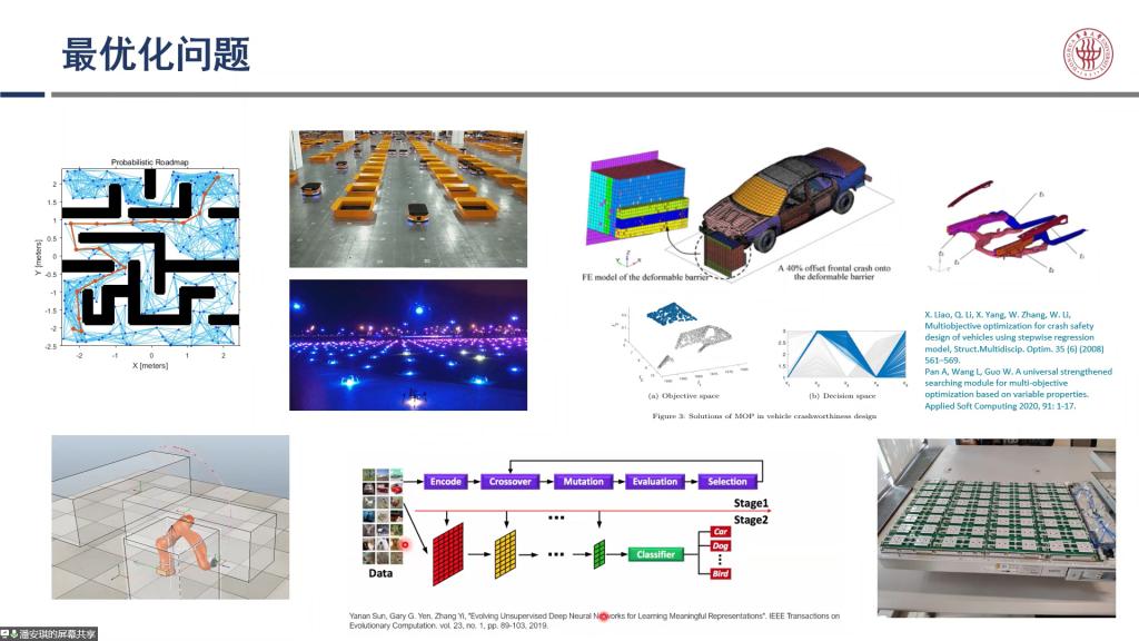 图2 | 潘博士展示最优化问题在路径规划、迷宫问题、调度问题、汽车防撞等方面的研究成果