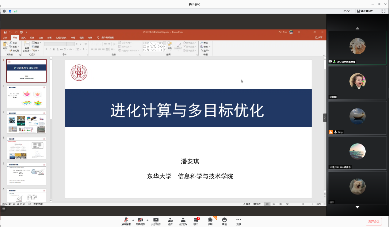 微电子学院通过线上举行了题为《进化计算与多目标优化》报告与交流会。这次报告由潘安琪博士主持,参会人员有郭靖老师和团队部分相关方向的研究生。