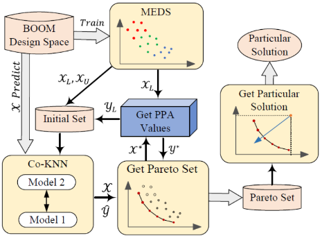 半监督学习是机器学习的其中一种方法,能结合有标签和无标签的数据来实现结果的预测,降低对有标签数据的依赖,同时有利于处理器设计的自动化。郑欣副教授创造性地将半监督学习应用于RISC-V处理器的多目标设计空间探索中,结合RISC-V处理器的设计经验和并行仿真方法,有效地优化了RISC-V处理器微架构的性能、功耗和面积,大幅度缩短了RISC-V处理器的设计周期。