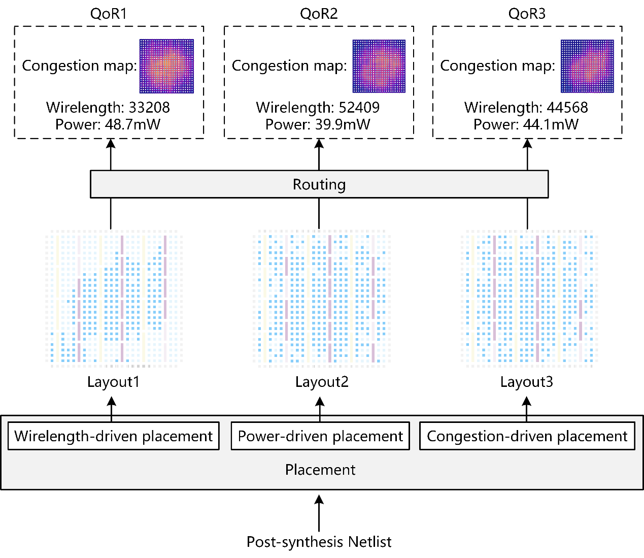 为了加速FPGA设计的QoR收敛,本文提出了一种多任务学习方法,用于联合预测线长、拥塞和功耗。通过共享共同的特征表示和采用联合优化策略,新的WCPNet模型(包括WCPNet-HS和WCPNet-SS)不仅可以同时预测不同尺度的三个度量,而且在预测性能和时间开销方面都优于大多数单任务模型。